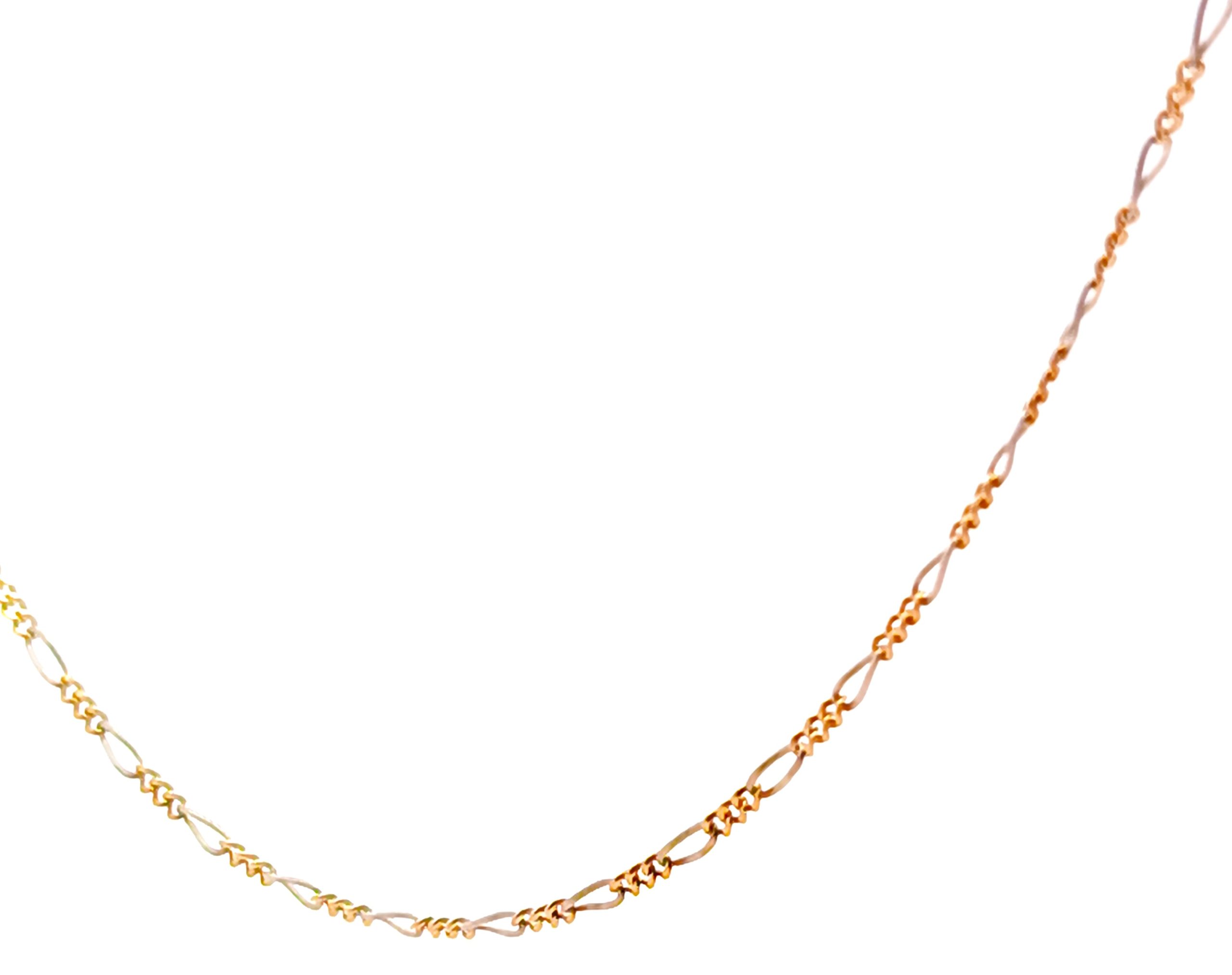 Cadena moderna realizada en oro 18k combinando oro amarillo , blanco y rojo. Largo: 51 cm.