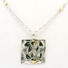 Collar Moderno Dije Y Cadena Plata 925 Oro 18k Flores