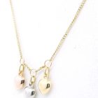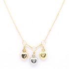 Collar moderno realizado en oro 18k sellado con 3 dijes corazones en 3 colores de oro.