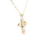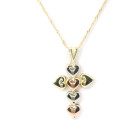 Conjunto de cadena y dije , modelo: cruz de corazones , realizado sen oro 18k , 3 colores de oro.