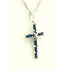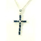 Dije cruz moderna realizada en plata 925 sellada con baguette de zafiros azules reconstituidos.