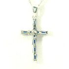 Cruz Moderna Zafiros Azules Baguettes Plata 925