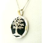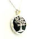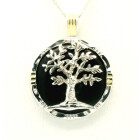 Dije moderno realizado en plata y oro con detalle central de arbol de la vida montado sonre onix autentico.