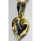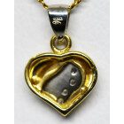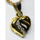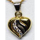 Dije moderno oro 18 kilates , combinad en amarillo y blanco , modelo: corazon , con zafiros blancos engarzados.