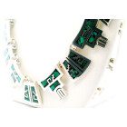 Gargantilla moderna diseño mexicano , realizada en plata 925 , decorada con malaquita y esmalte.