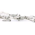 Gargantilla moderna realizada en plata 925 con zafiros blancos engarzados en su arte central formando guarda griega.