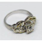 Anillo solitario antiguo, realizado en platino 950, macizo , pose brillante central , de maxima calidad y pureza de 0,12 ct de peso , y a ambos lados posee brillantes , de gran calidad y color de, 0,03 ct c/u aprox, peso total en kilates : 0,30 ct , peso en gramos de la alhaja: 5,5 gr