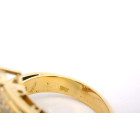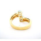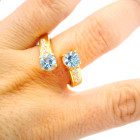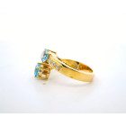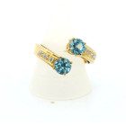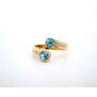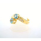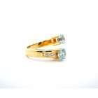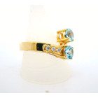 Anillo moderno de exquisita orfebreria realizado en oro amarillo 18k con topacios centrales azules y brillantes autenticos.