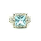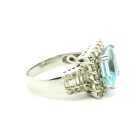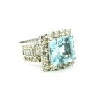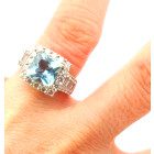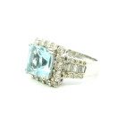 Gran Anillo Moderno Oro Blanco 18k Agua Marina Brillantes