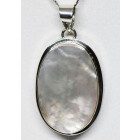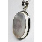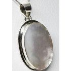 Dije moderno realizado en plata 925 , sellado con nacar oval.