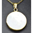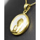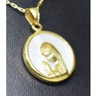 Dije moderno oro 18 kilates y detalle de nacar, modelo virgen niña.