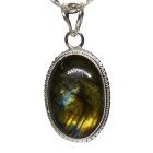 Delicado colgante moderno realizado en plata 925 , labradorita central color verde , natural.