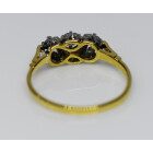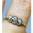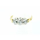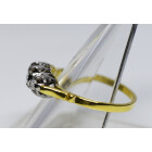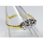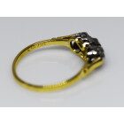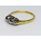 Anillo antiguo tricillo realizado en oro 18k y engarces sobre platino 950 , brillantes autenticos , peso en kilates: 0,24 ct totales.