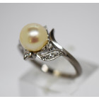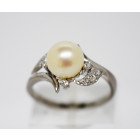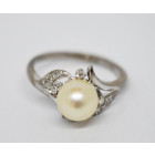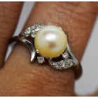 Hermoso anillo oro blanco 18k gran perla brillantes