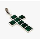 Hermoso Colgante Cruz Mexicana Plata 925 Turquesas Verdes