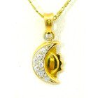 Dije moderno realizado en oro 18 kilates: modelo: sol y luna , con zafiros blancos engarzados.