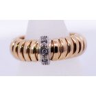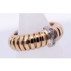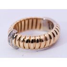Anillo moderno de diseño , estilo Cartier tubo gas , realizado en oro 18k , amarillo y blamco , con brillantes engarzados.