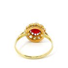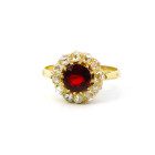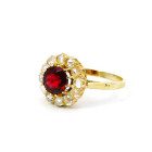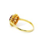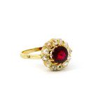 Anillo roseta antigua, realizada en oro 18k , con brillantes rose cut y rubie central de 1 ct.