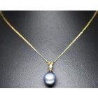 Conjunto realizado en oro 18 kilates , cadena y perla barroca autentica , con brillante natural engarzado. largo total 28,5 cm