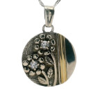 Dije moderno realizado en plata 925 y detalles en oro 18k , modelo flores con cubic engarzados.