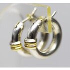 Par de aros argollas modernas realizados en plata 950 y oro 18k , sellados. 15 mm de diametro.