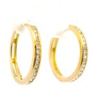 Par de aros modernos argollas con zafiros blancos engarzados realizados en oro 18k.