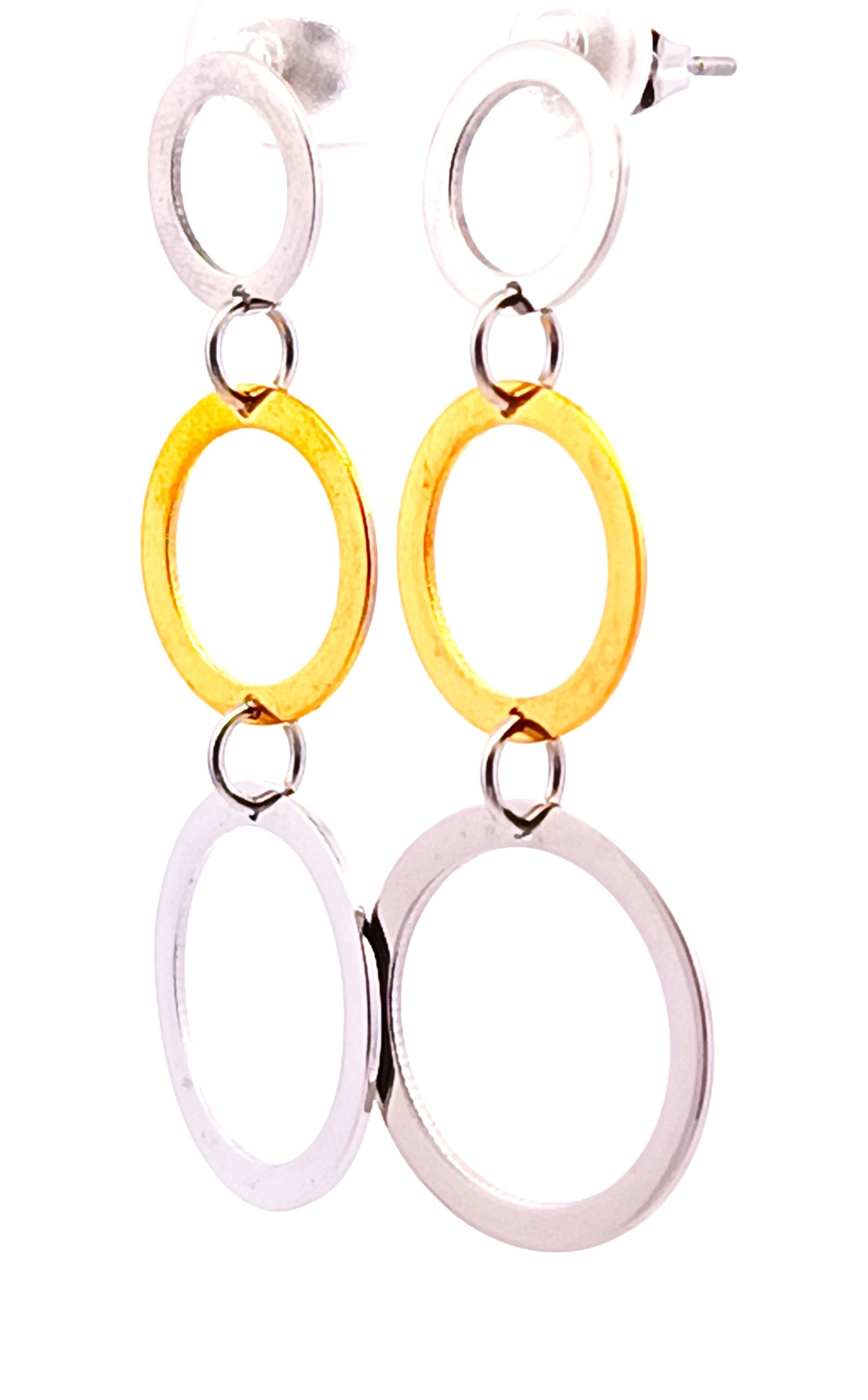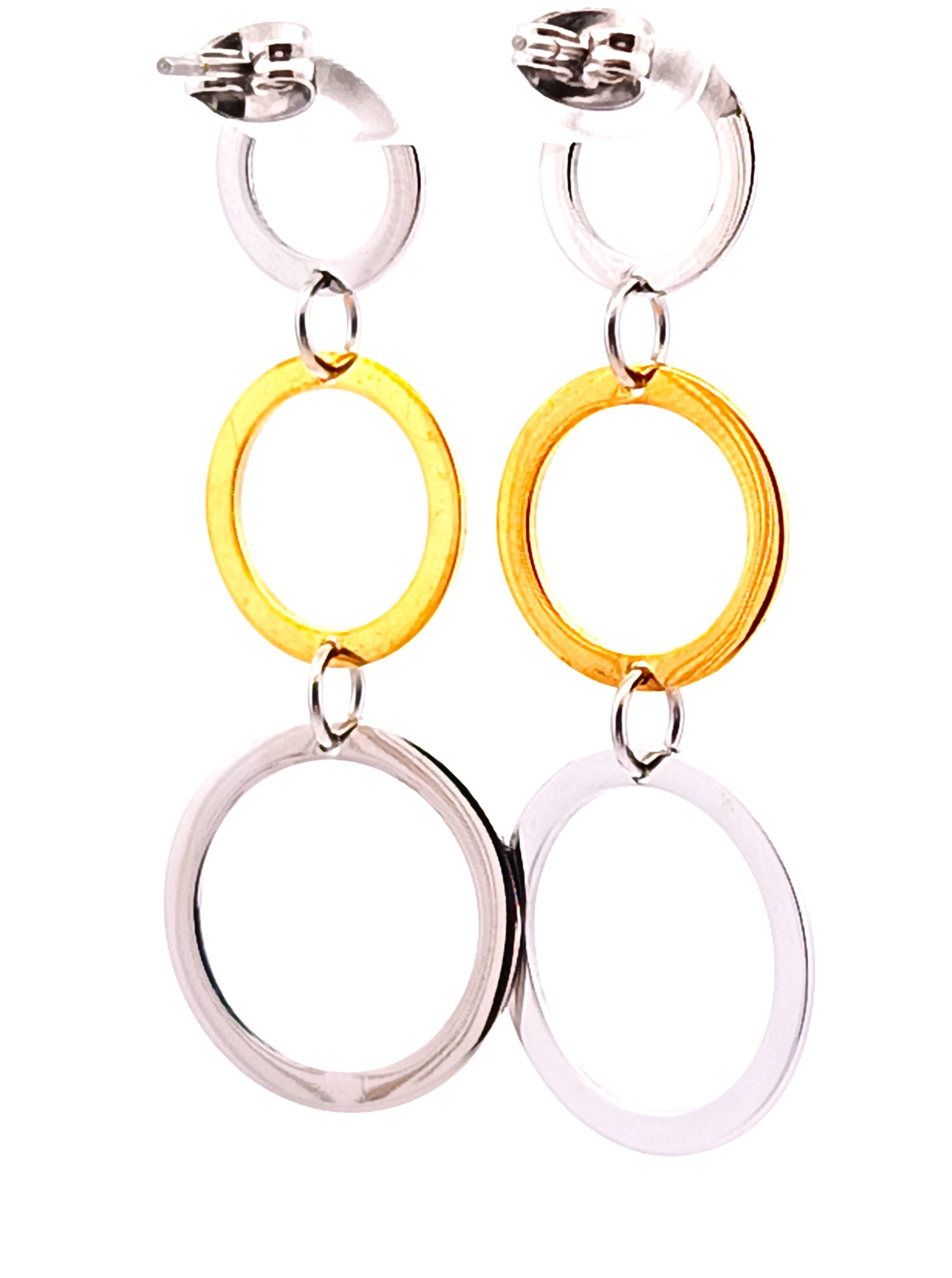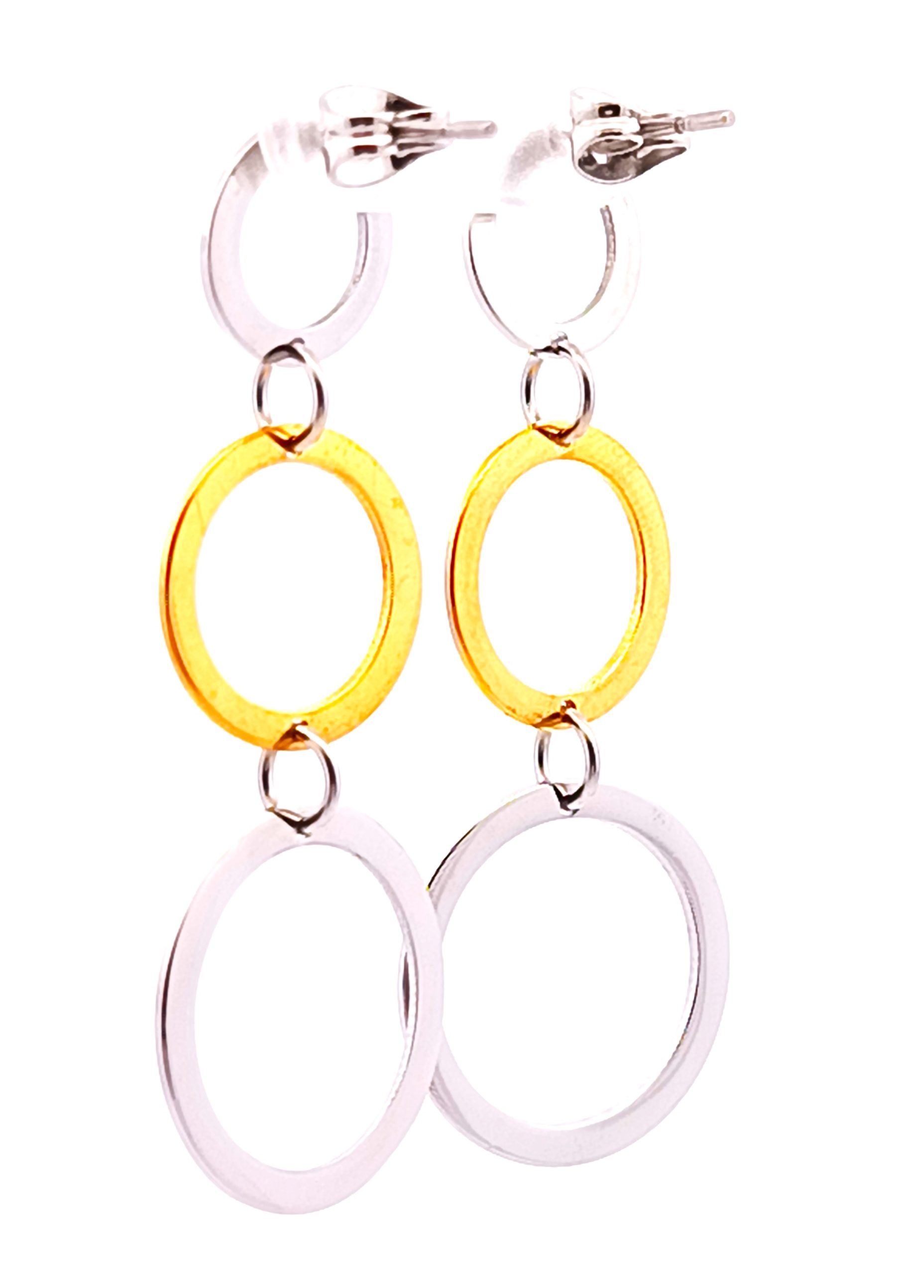 Par de aros modernos realizados en plata 925 con detalles de plata dorada. Modelo: circulos pendientes.