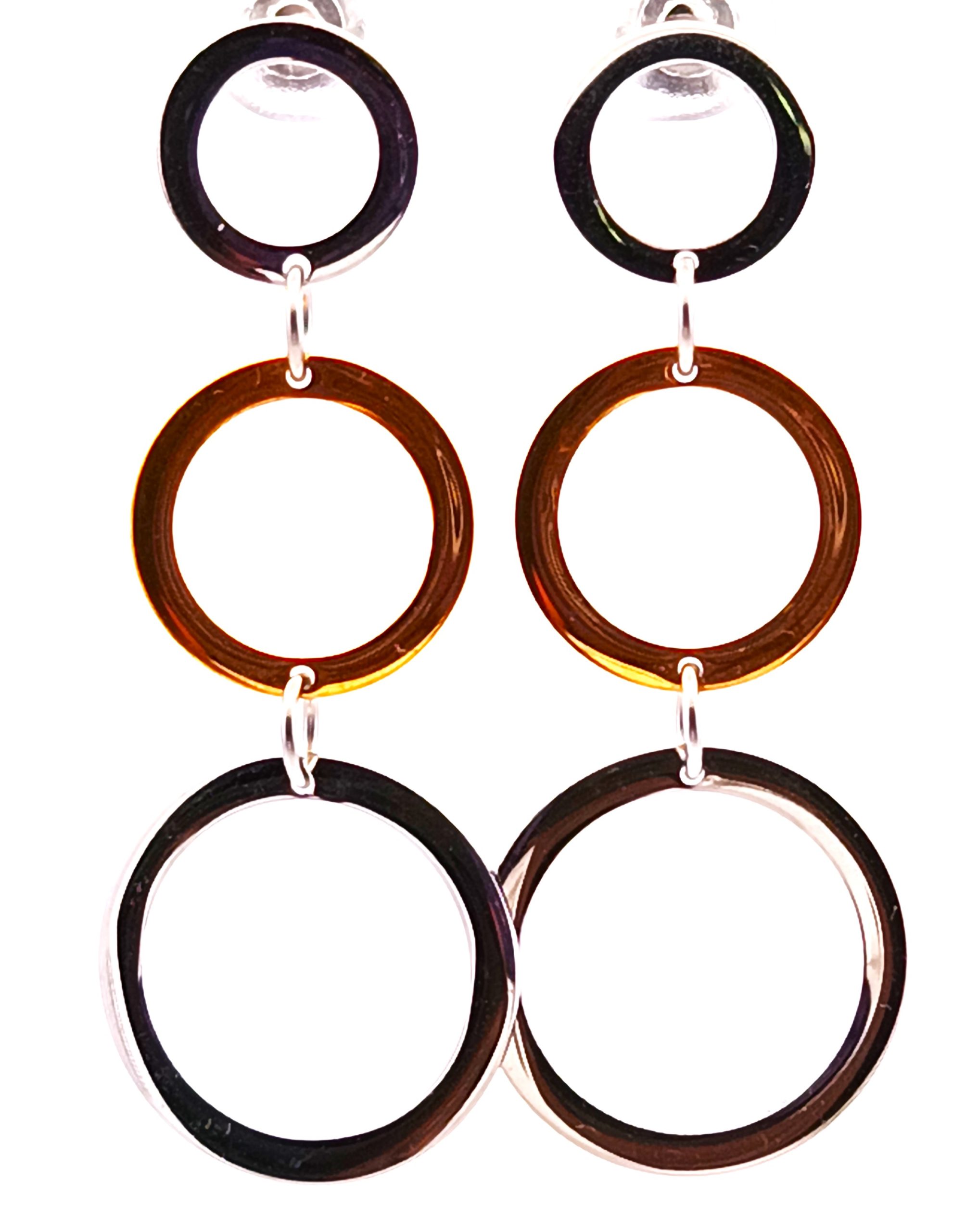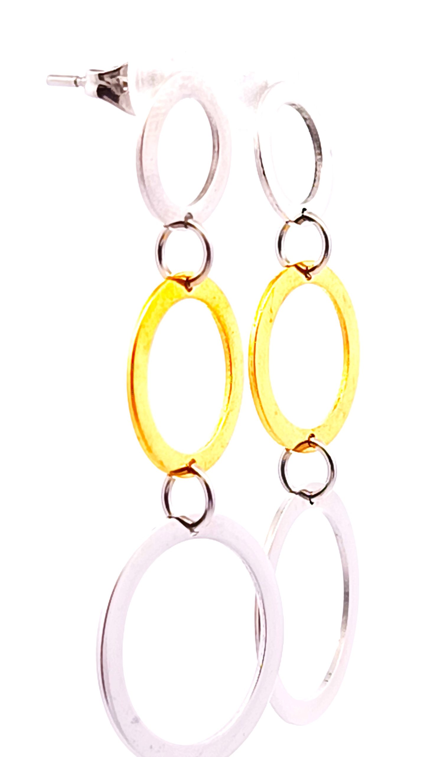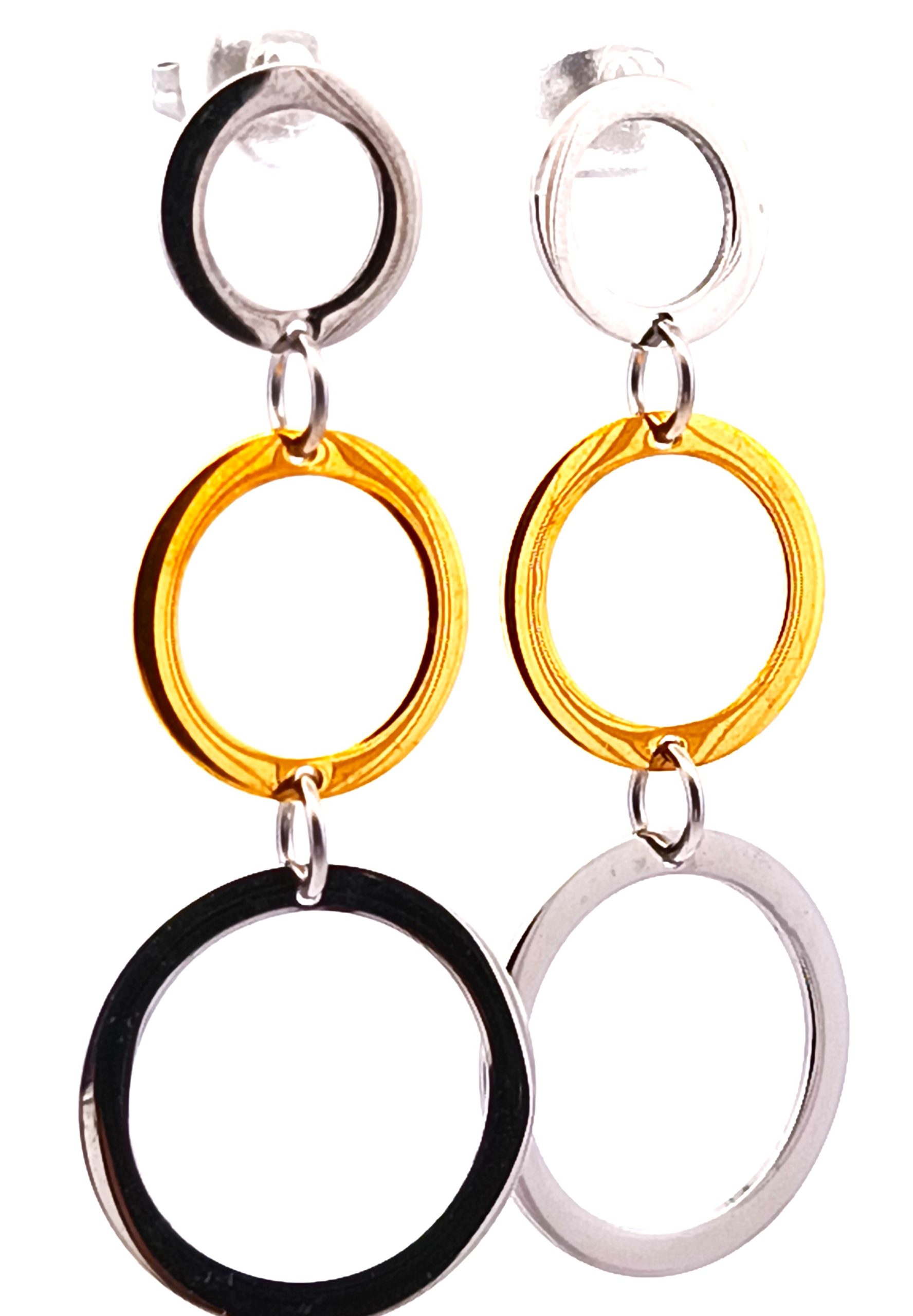 Par de aros modernos realizados en plata 925 con detalles de plata dorada. Modelo: circulos pendientes.
