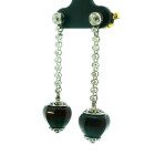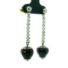 Par de aros antiguos Art Deco realizados en platino 950 con cierre de oro 18k, posee brillantes autenticos y borlas de onix natural.