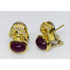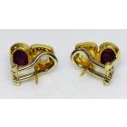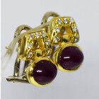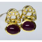 Par De Aros Franceses Oro 18k Brillantes , Rubies Cabullon