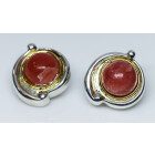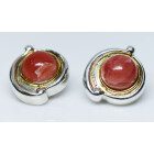 Aros clip a la oreja, realizados en plata 925 y detalle de filete de oro macizo 750 , sellados, con gema natural: quarzo rosa.