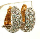 Par de aros media argollas con frente de pave de zafiros blancos.