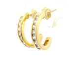 Par de aros modernos , realizados en oro 18k, modelo medio sinfin con cubic.