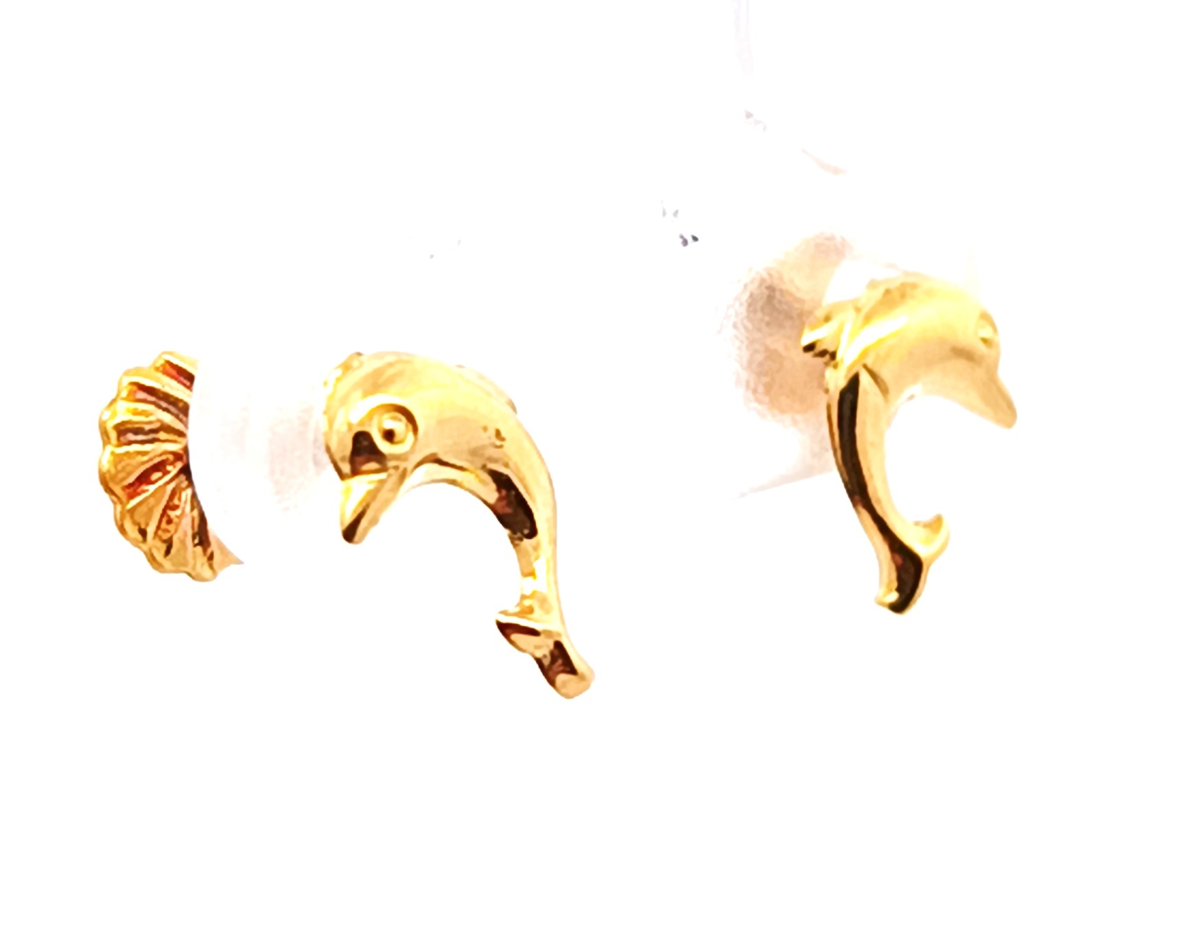 Par de aros modernos realizados en oro 18k . Modelo: delfines