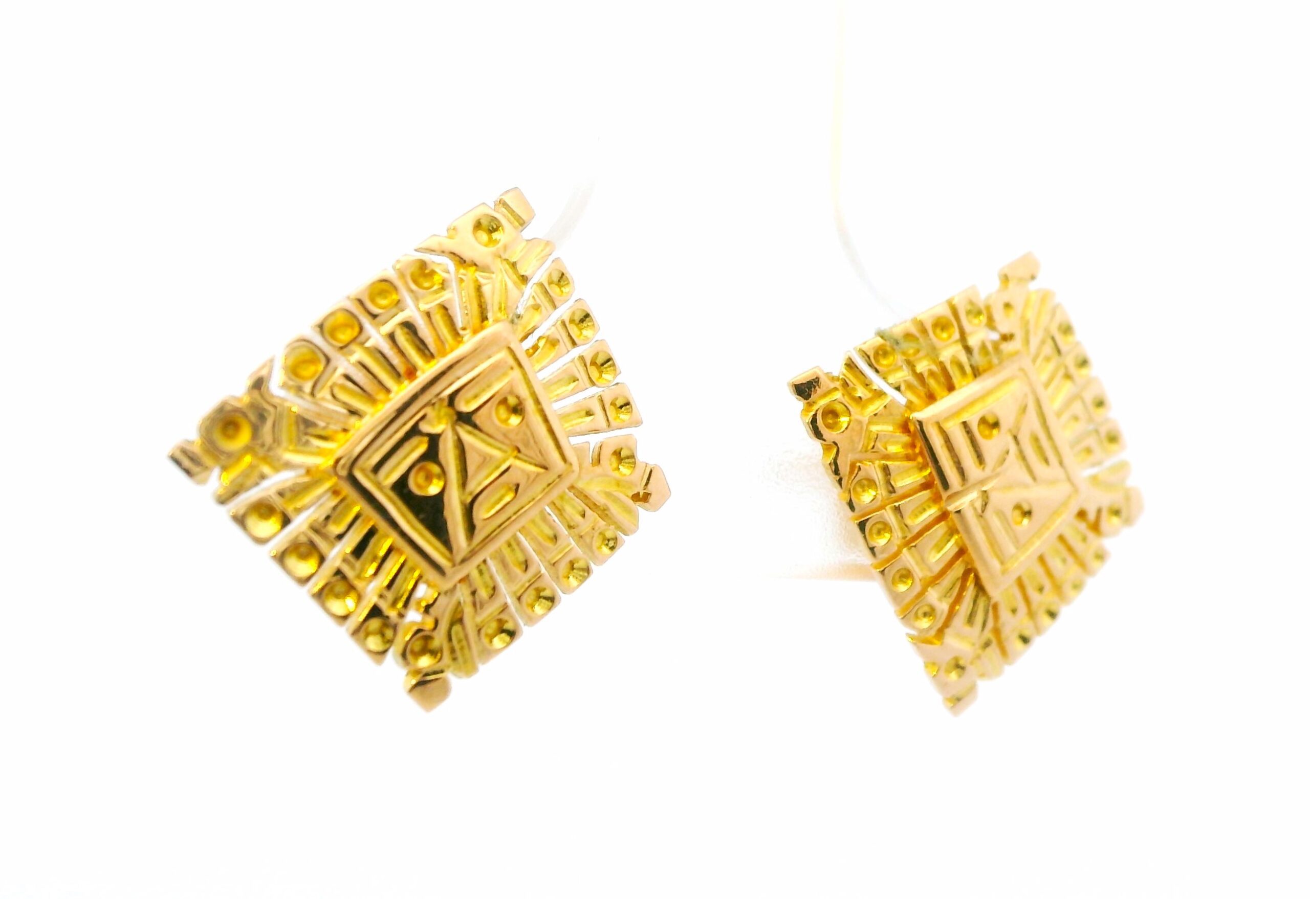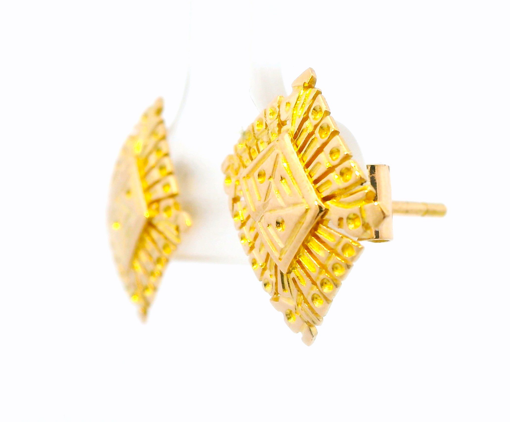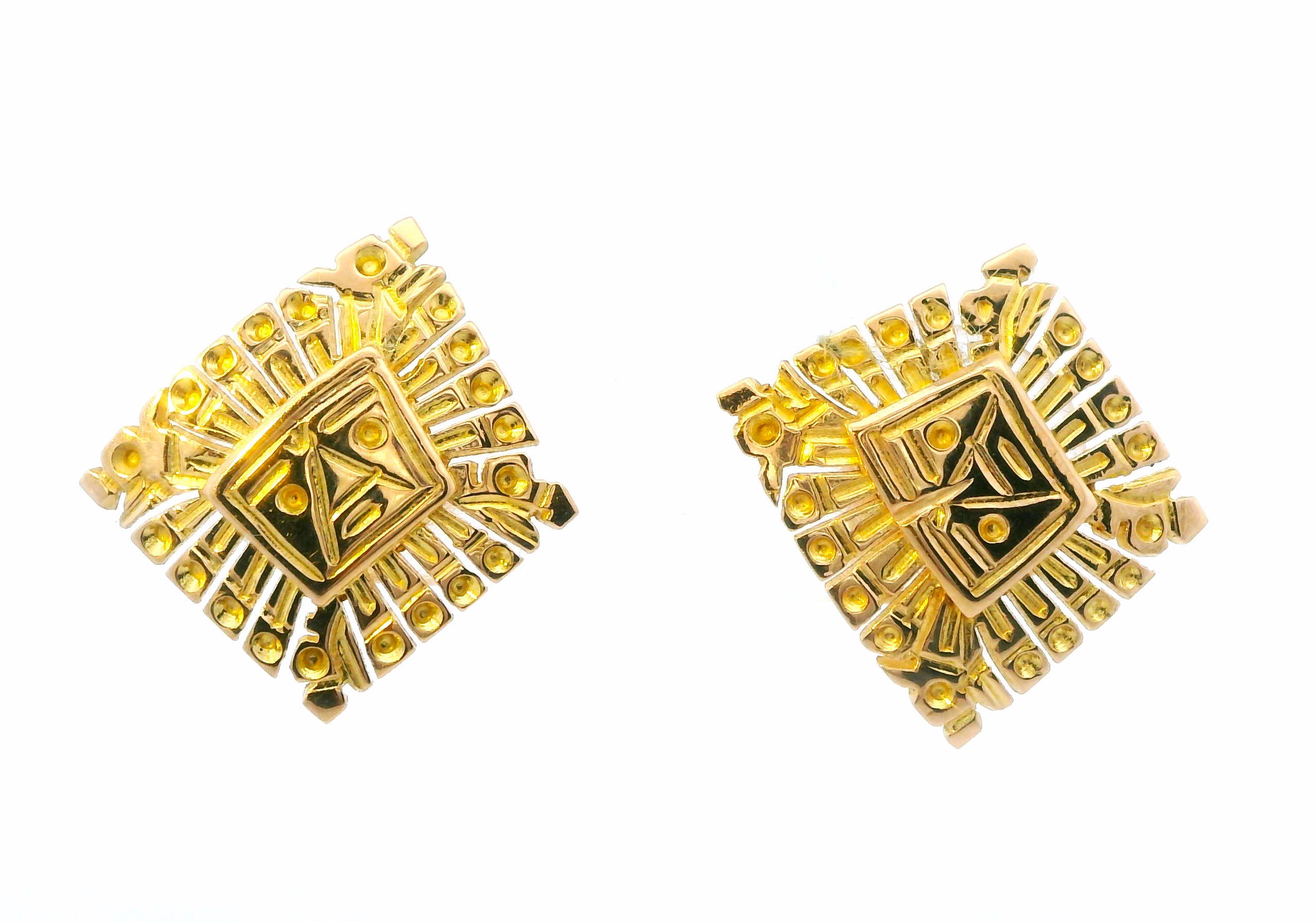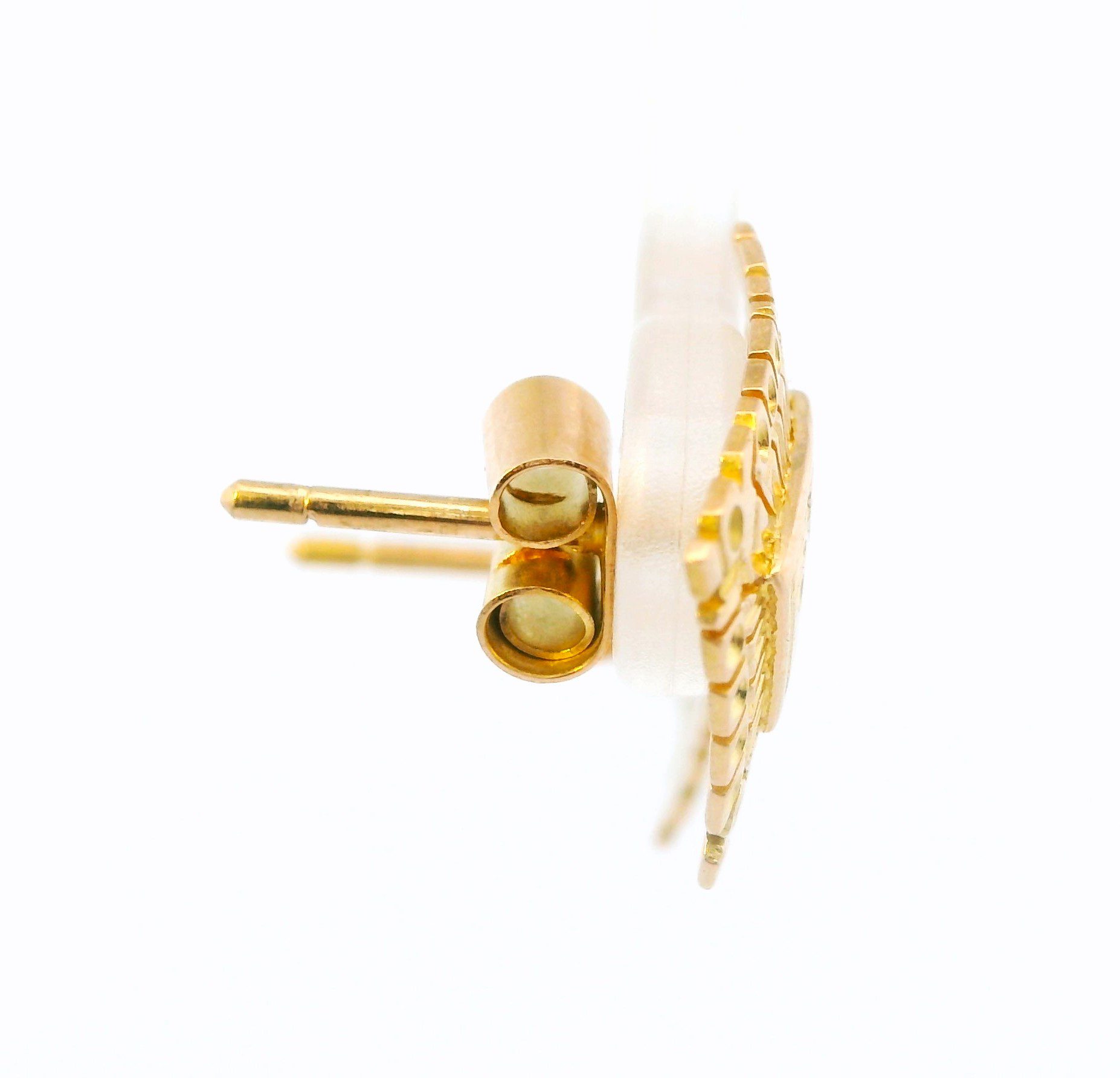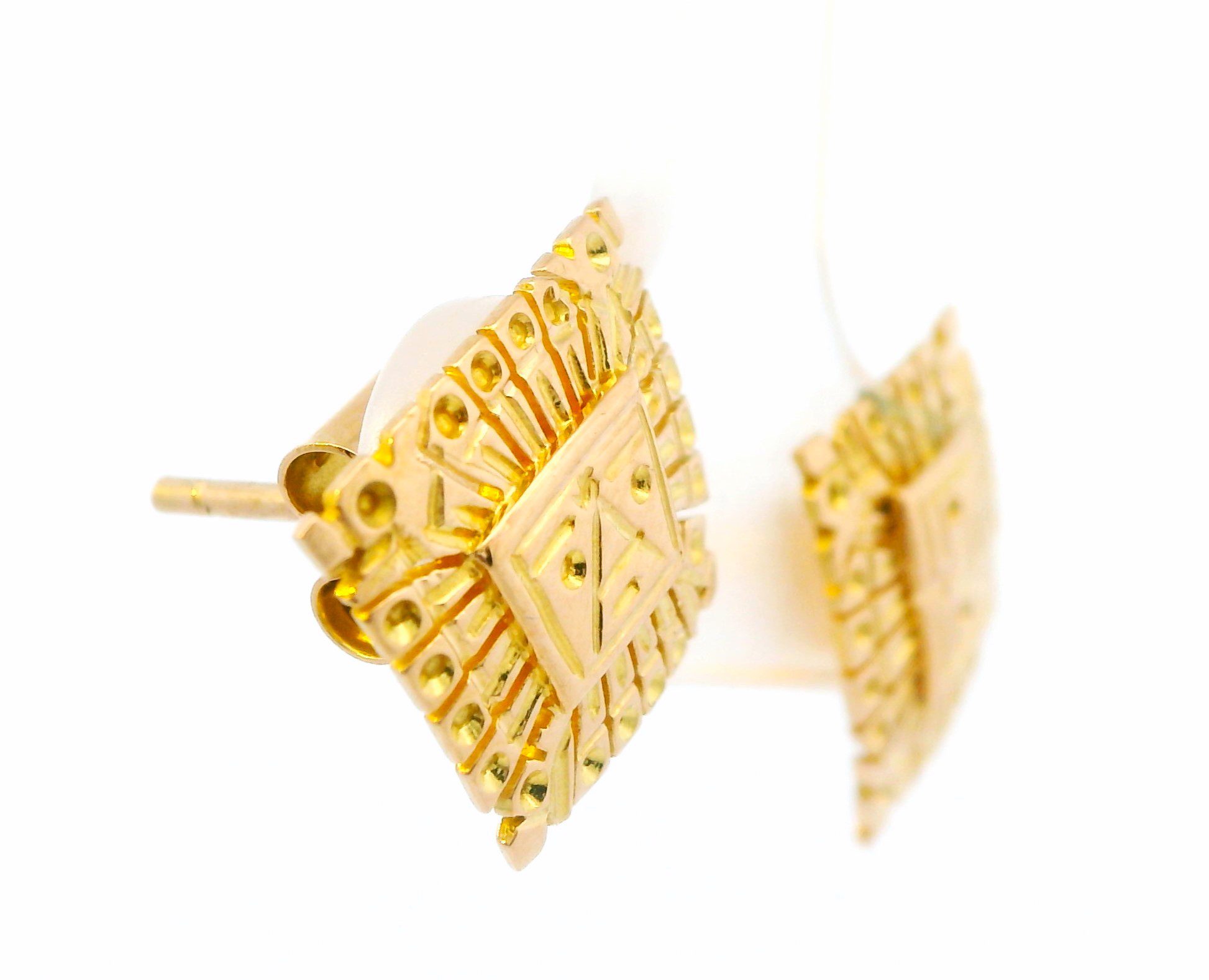 Par de aros realizado en oro 18k con diseño Peruano. Sistema de perno pasante con traba a presion.