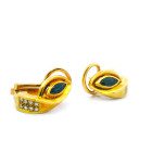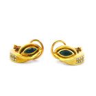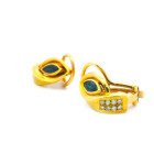 Par de aros modernos realizados en oro 18k , brillantes autenticos y zafiros engarzados.