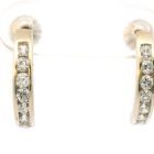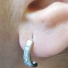 Par de aros modernos realizados en oro 18k color blanco , con cubic engarzados. Modelo media argolla.