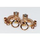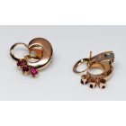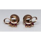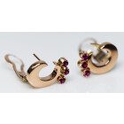 Par de aros clip a la oreja , realizados en oro 18k , color de oro rojo , posee rubies de origen reconstituido.