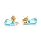 Par de aros modernos realizado en oro 18k con aguas marinas autenticas y brillantes.