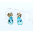 Par De Aros Oro 14k Macizo Agua Marina Natural Brillantes