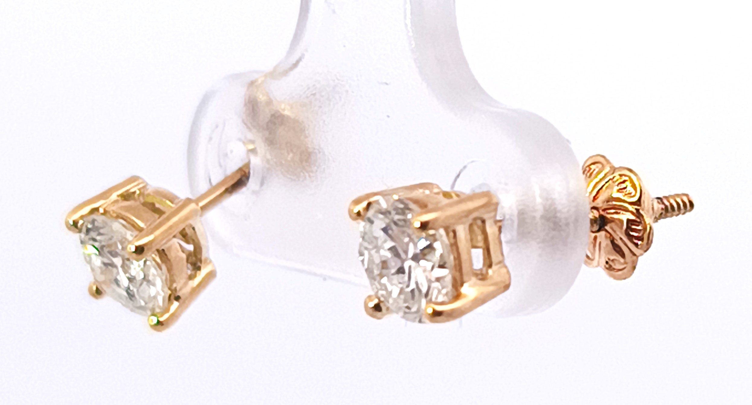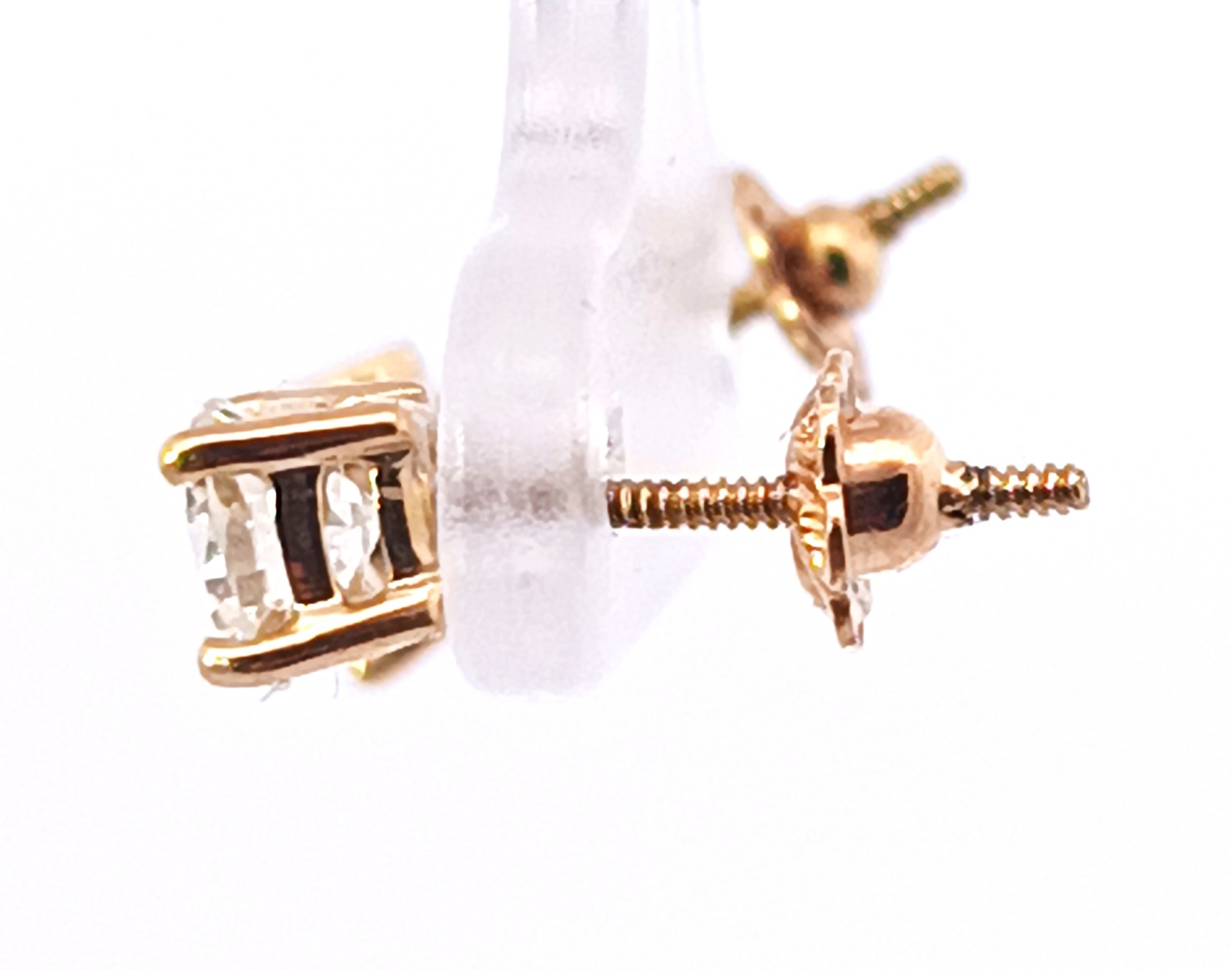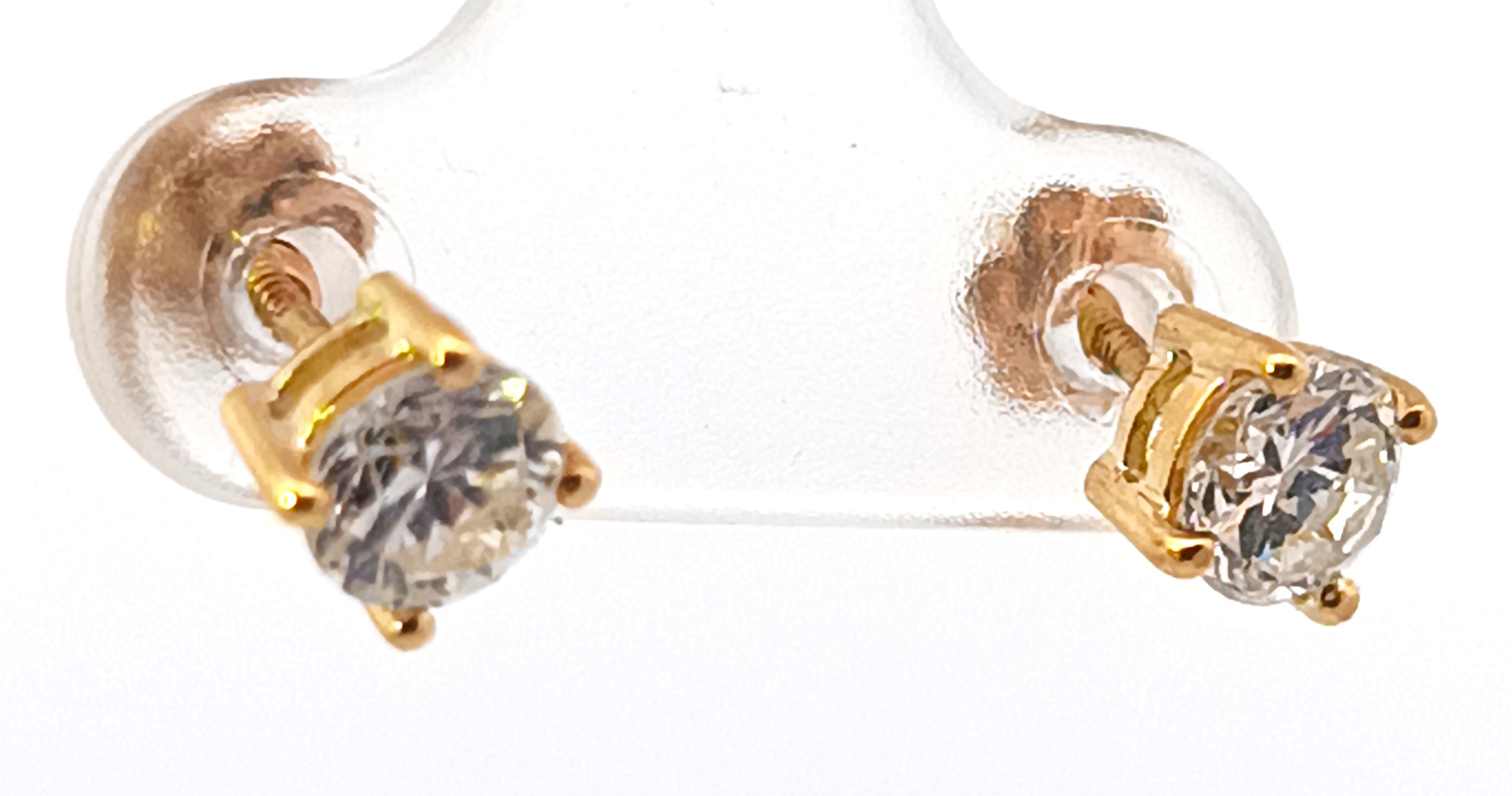Par de aros solitarios modernos realizados en oro 18k con brillantes autenticos. Brillantes de 0,50 ct cada uno , peso total en kilates 1 ct.