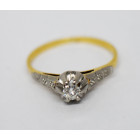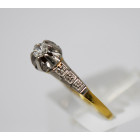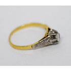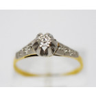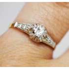 Anillo solitario de compromiso , modelo art deco , oro 18 kilates y engarce sobre platino 950 , brillante central talla completa europea , maxima calidad y pureza, peso en kilates: 0,20 ct , peso en gramos de la alhaja: 2,3 gr