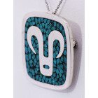 Dije prendedor moderno , realizado en plata 925 con incrustaciones de turquesas naturales, modelo : signo de aries.Origen: Mexico.