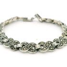 Pulsera brazalete estilo antigua realizada en plata 925 con marquesitas engarzadas simulando diamantes.