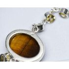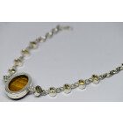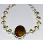 Pulsera modena realizada en plata 925 , gran cabullon central de ojo de tigre y topacios amarillos