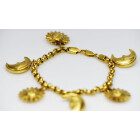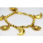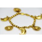 Pulsera moderna realizada en oro 18k , modelo roll on con dijes , sol y luna , hermoso diseño , origen mexico. Maciza.