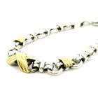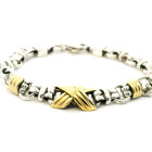 Pulsera moderna realizada en plata 925 con detalles de oro 18k, modelo x con circulos,