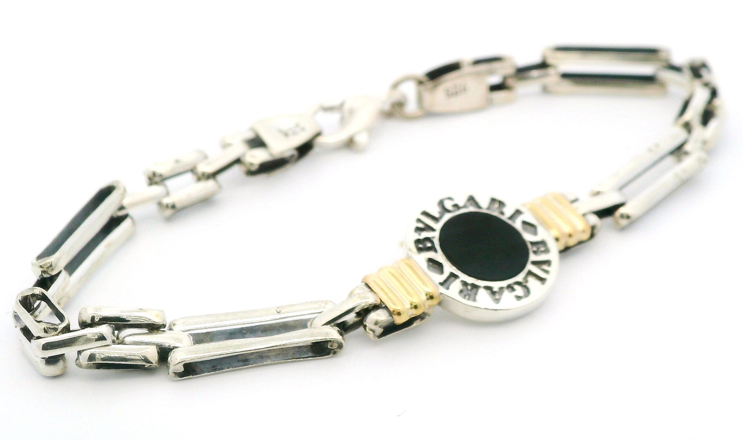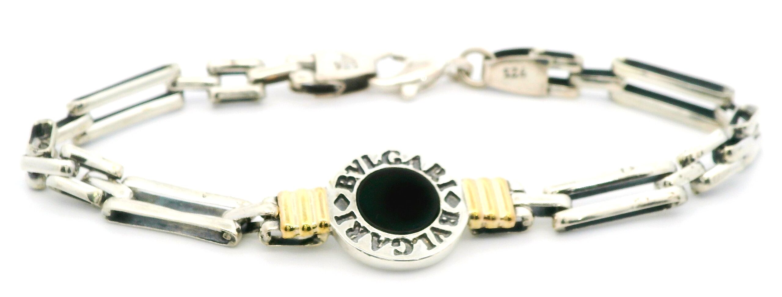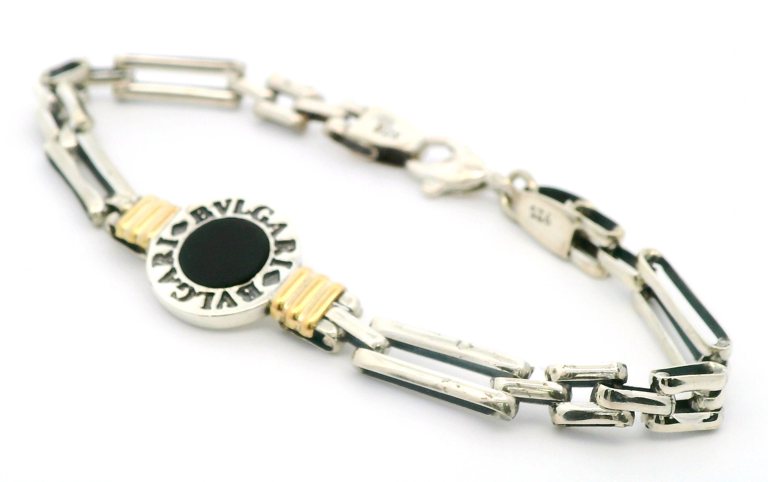 Pulsera Moderna Plata 925 Y Oro 18k Onix Estilo Bulgari