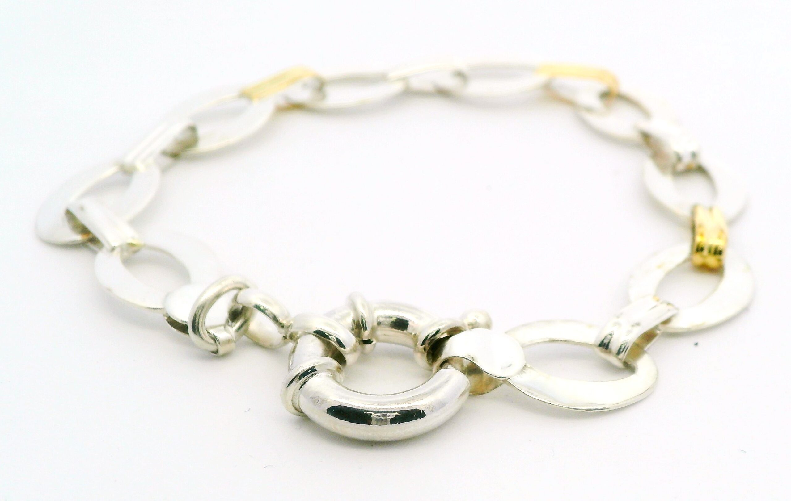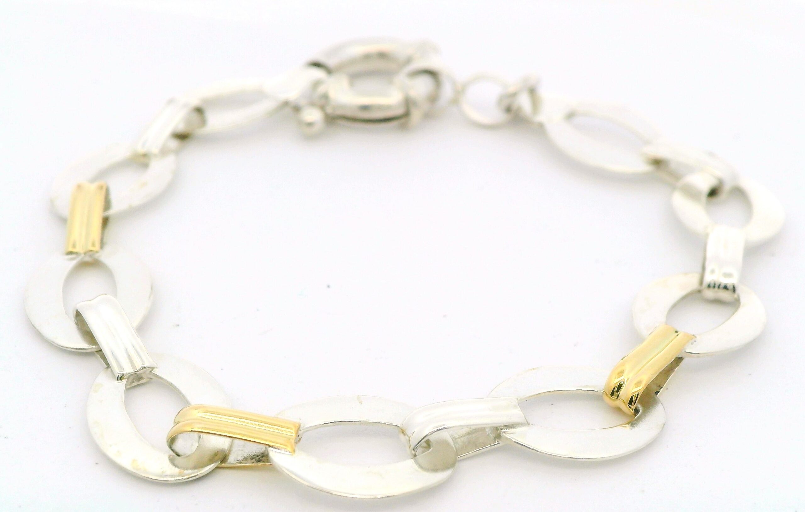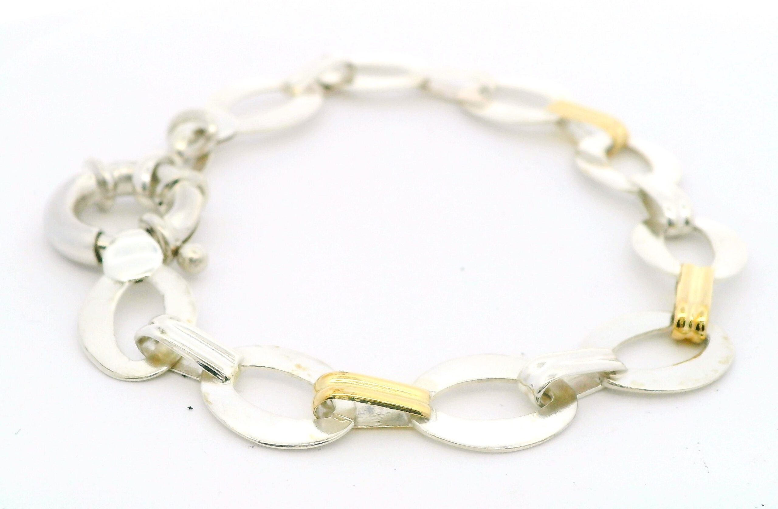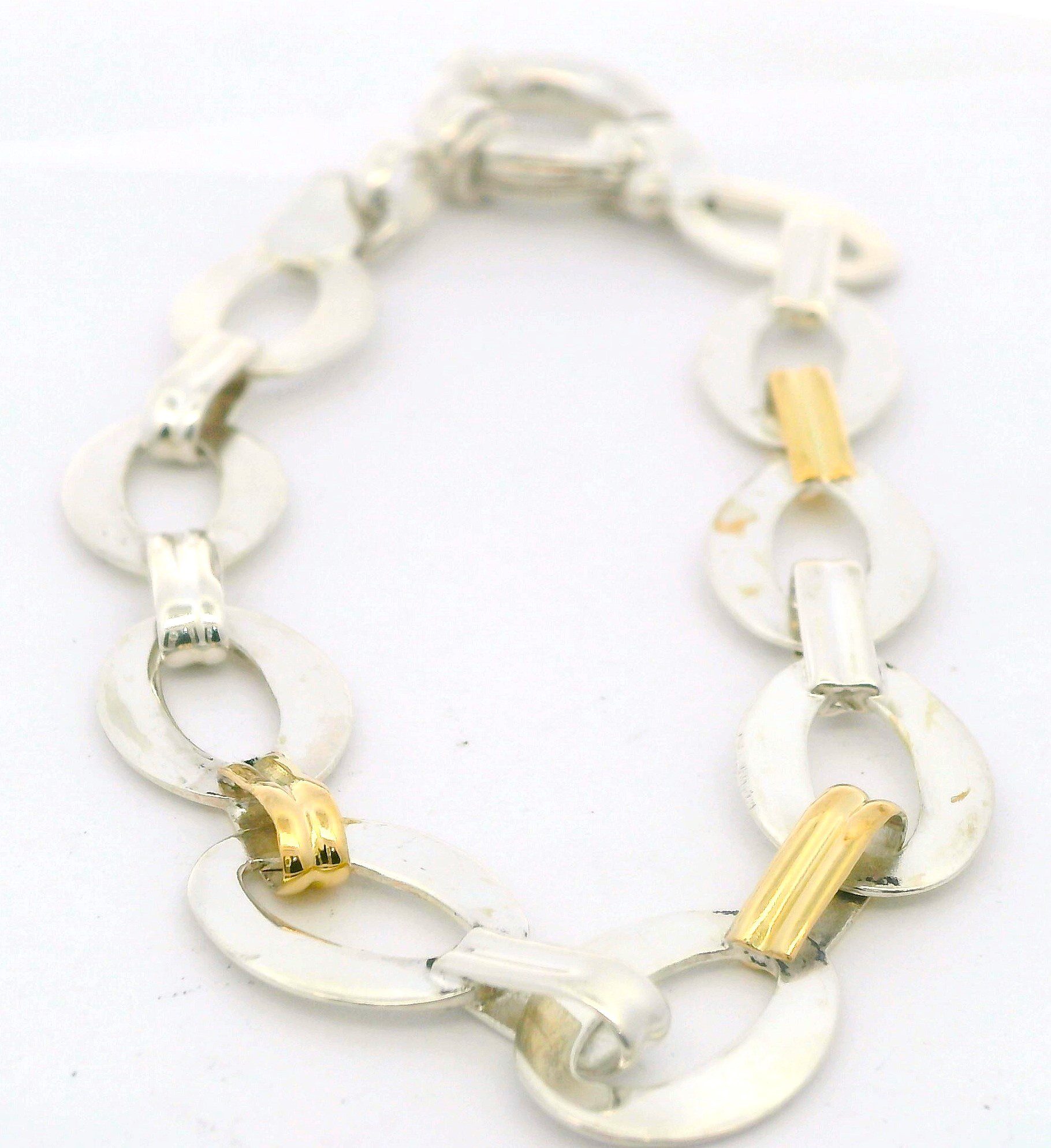 Pulsera Moderna Plata 925 Y Oro 18k Ovalada 9,6 Gr