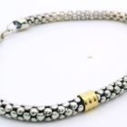 Pulsera moderna tejida realizada en plata 925 y detalles en oro 18k.